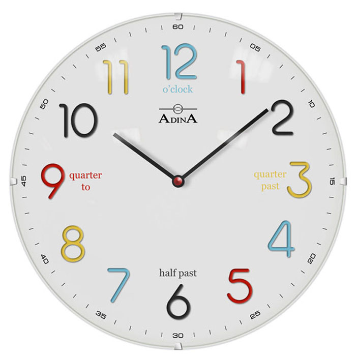 This Funky Colourful Time Teacher Adina wall clock is great to learn how to tell time and to teach others. The Bold Colourful Full Figure numbers make it clear and easy to read. Also the description and details around the numbers make this Funky model have extra points to help teach others how to read time in a fun and easy way.