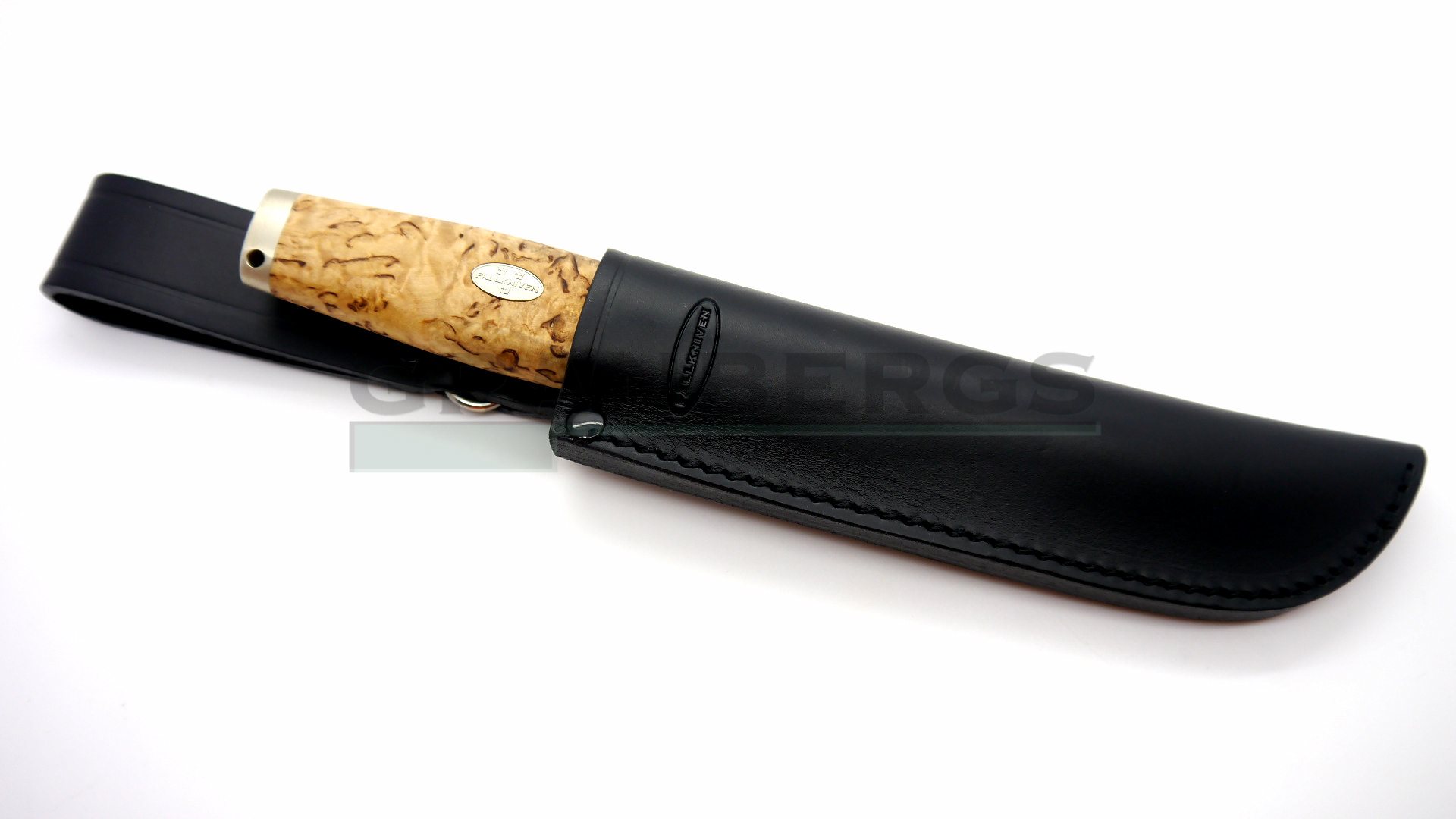 What distinguishes a Swedish knife? Perhaps the apparently simple design or maybe providing a good and safe function, all without frills. The classic clean lines discern a philosophy that honours the skill and experience of the mind, where the tool is allowed to play its part but to outshine the one that holds the handle - the perfect combination. So it is with Jarl and Juni, our new sheath knives. Handles of rich curly birch, solid nickel silver fittings and sharp blades of laminate powder steel. The world's best, in our opinion. Open, low hanging black leather sheath, for easy access.