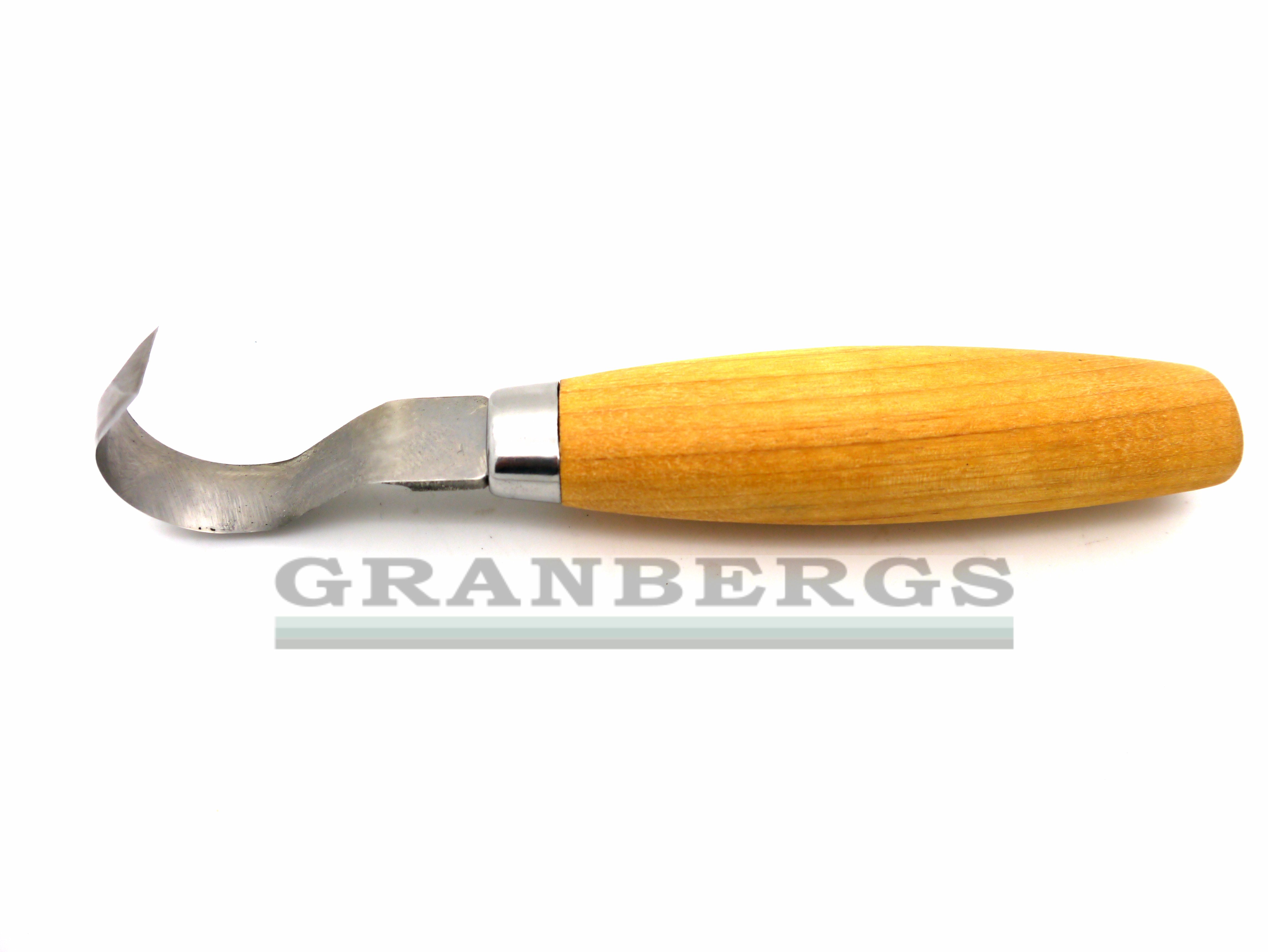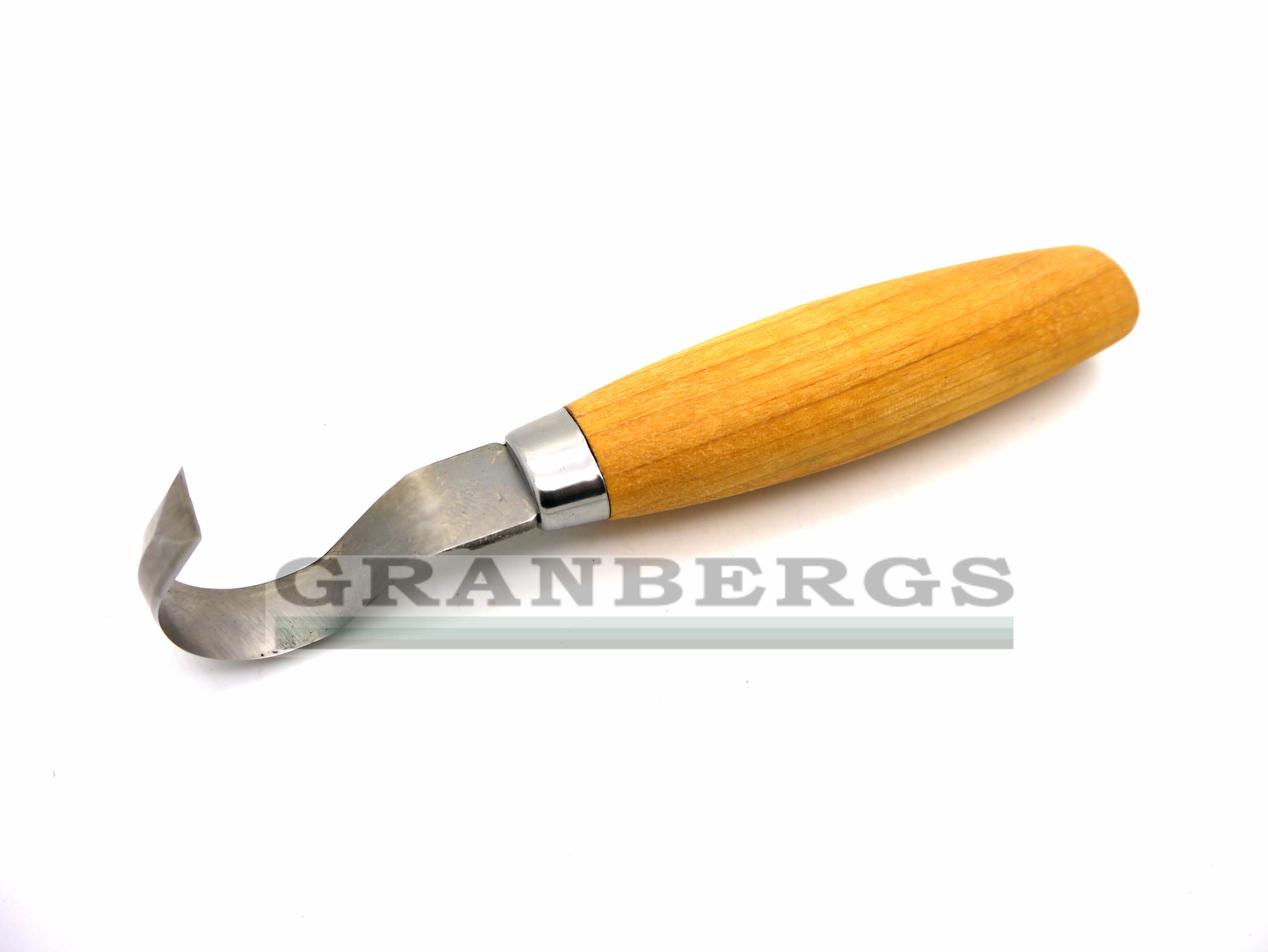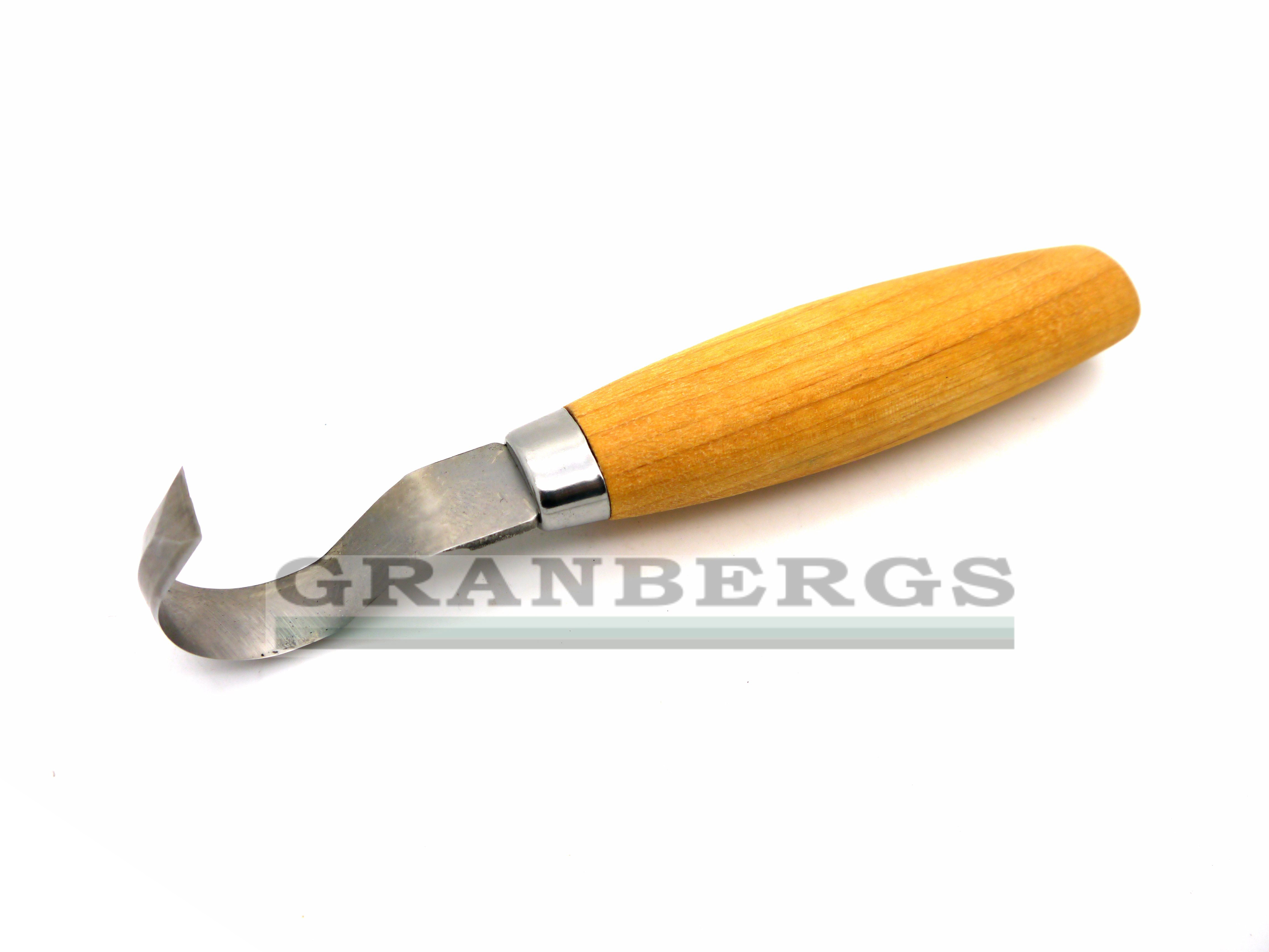 Hook knife for spoon carving. Double-edged. Stainless steel blade. Oiled birchwood handle.