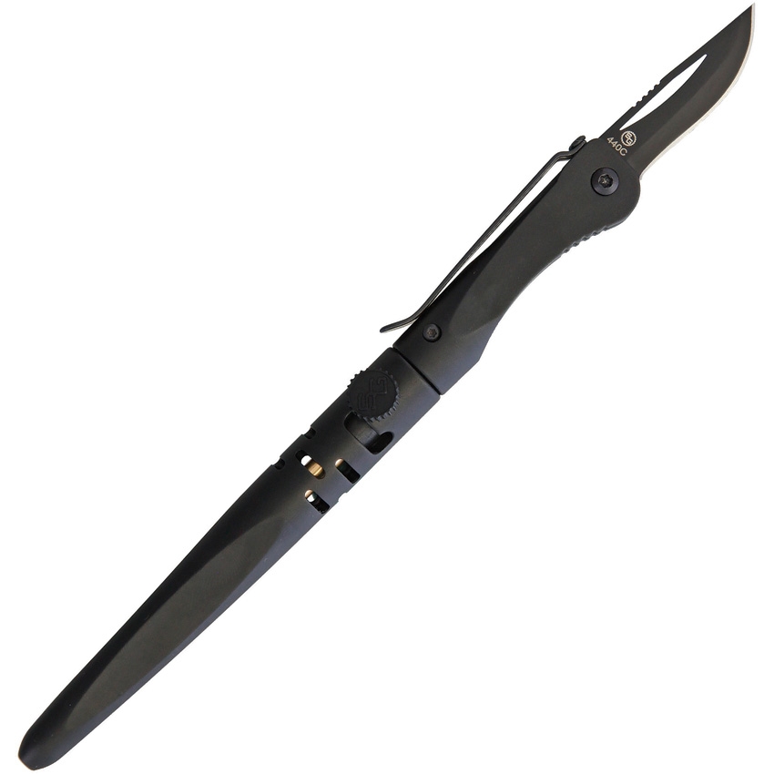 The TriTac Tactical Pen is the ultimate EDC! An evolution of our popular Tacpen, the TriTac features a 440c stainless blade, in addition to a tungsten carbide window punch. The TriTac features a heavy duty bolt-action mechanism for the Fisher Space Ink Cartridge™, which allows one to write in the most extreme conditions (from wet to outer space! (literally). The TriTac is engineered from aircraft aluminum, and features an ergonomic grip for maximum writing comfort. The TriTac Tactical Pen makes a great addition to your everyday carry!